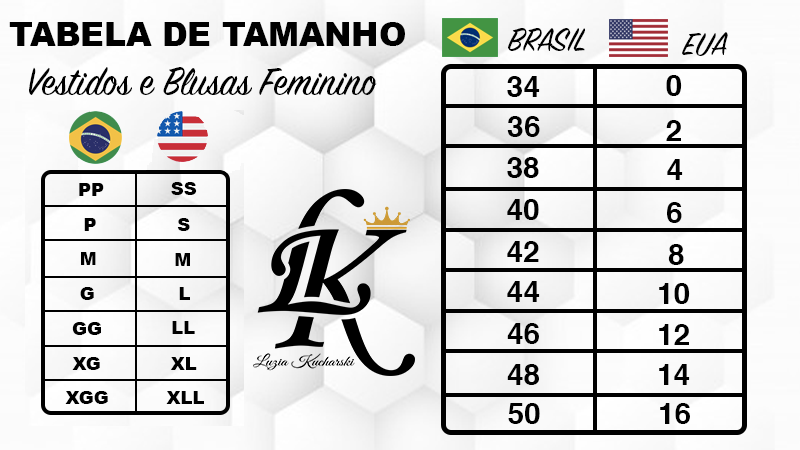 Tamanhos Disponíveis: 2, 4, 6, 8, 10, 12, 14, 16